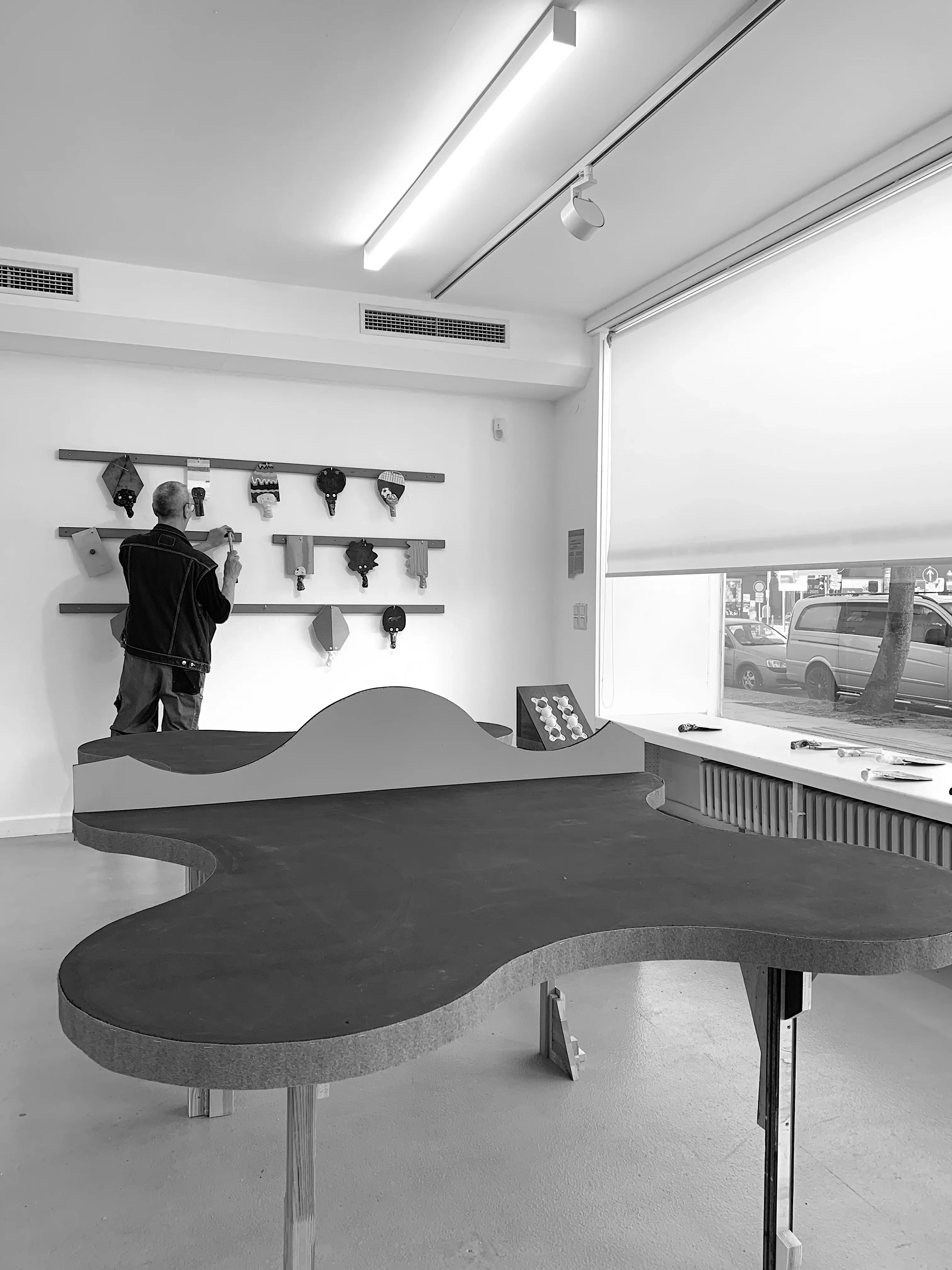 Als dritte Station des RecyclingDesignpreises 2025 entstand in der Galerie Nord / Kunstverein Tiergarten eine neue DIY Ping Pong-Platte aus Materialien des hauseigenen Lagers. Die Spielfläche orientiert sich formal an der Struktur von Eierkartons und verschiebt die klassische Geometrie des Tischtennis-Schlägers in eine reliefartige, skulpturale Form.