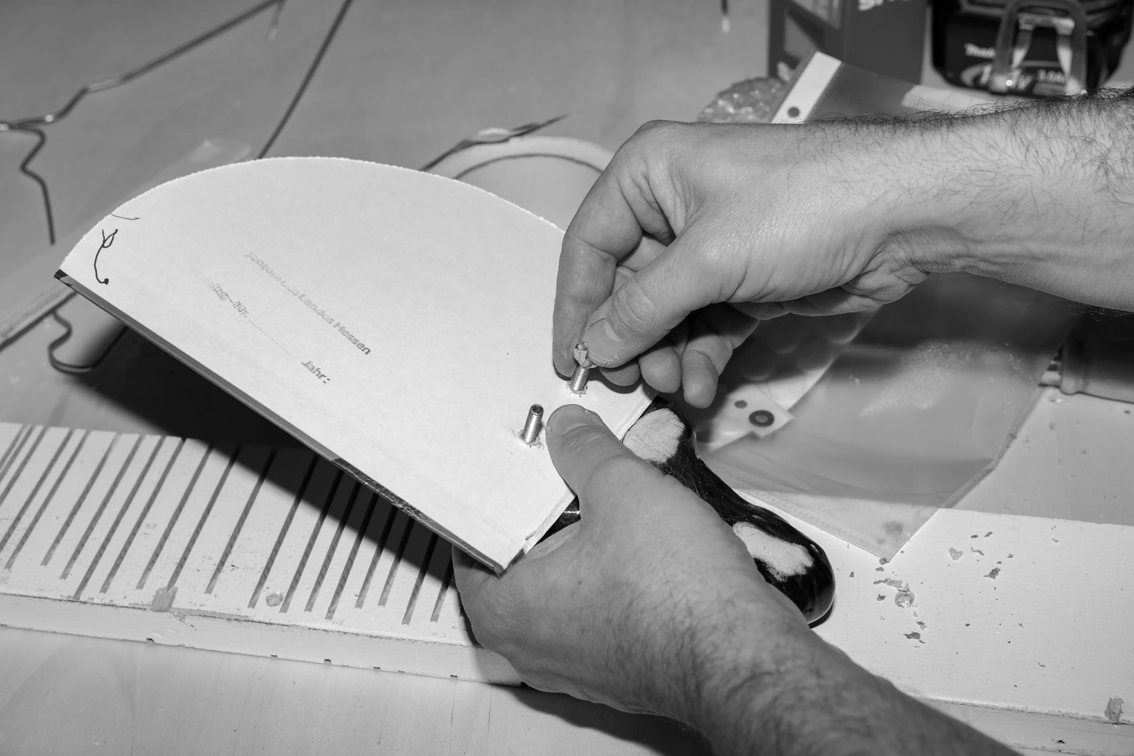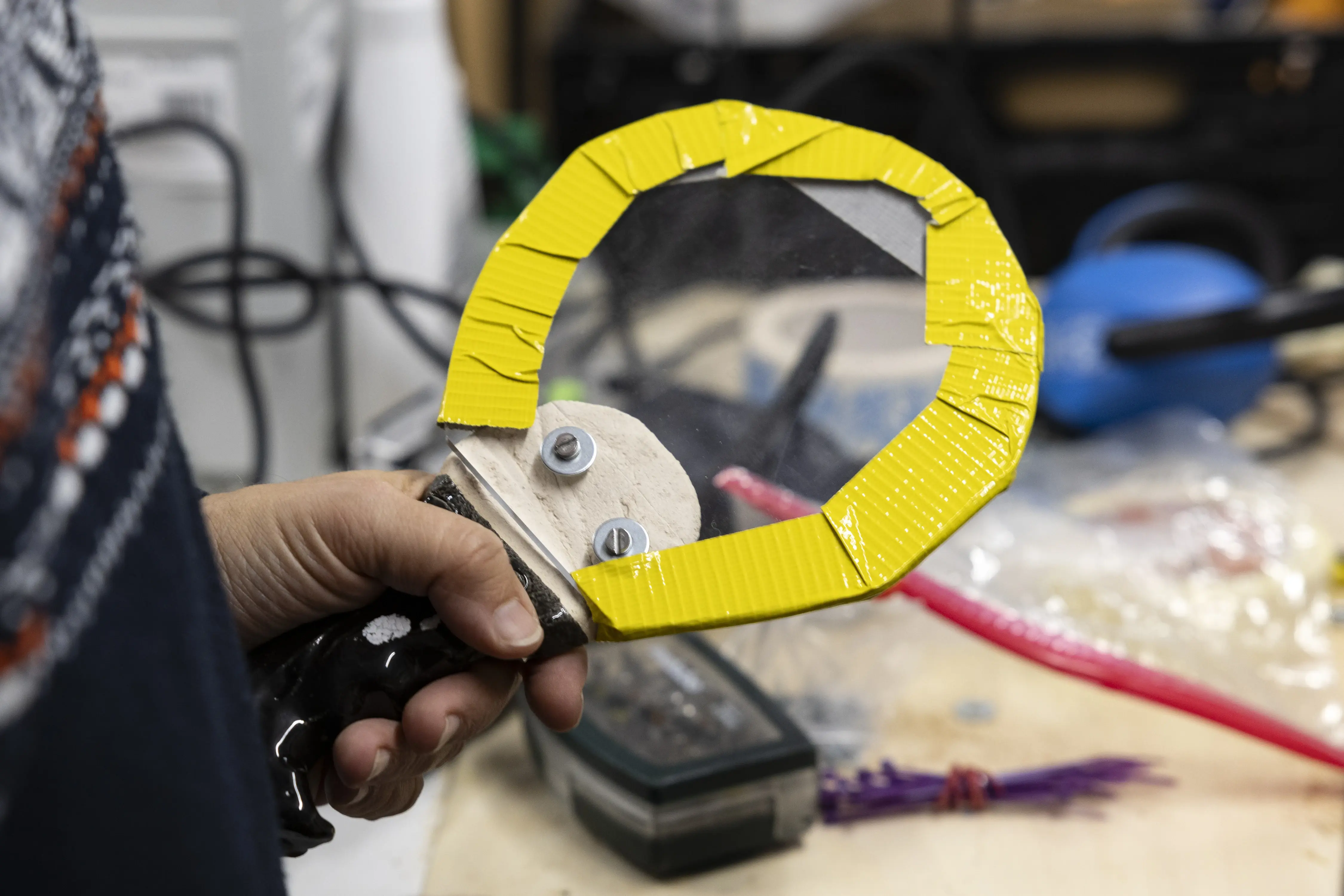 Die erste Ausgabe von DIY Ping Pong entstand in Zusammenarbeit mit Künstler*innen des Atelier Goldstein. Der Fokus lag auf keramischen Griffen, die individuell geformt und glasiert wurden, während die Schlägerflächen aus vor Ort verfügbaren Materialien entwickelt wurden. Das Projekt verbindet künstlerische Praxis mit inklusiver Zusammenarbeit und materialbasierter Improvisation.