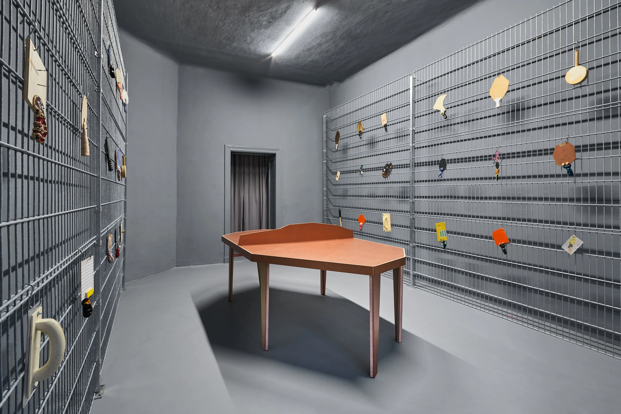 Im Kreuzberg Pavillon wurde DIY Ping Pong in enger Zusammenarbeit mit den Projektraum-Betreiber*innen Lisa Schorm und Heiko Pfreundt realisiert. Der Fokus lag auf einem offenen, prozessorientierten Arbeiten, bei dem Material, Raum und Austausch mit Lisa und Heiko zentral waren. Die Schläger entstanden als situative Reaktionen auf den Ort und seine Strukturen.