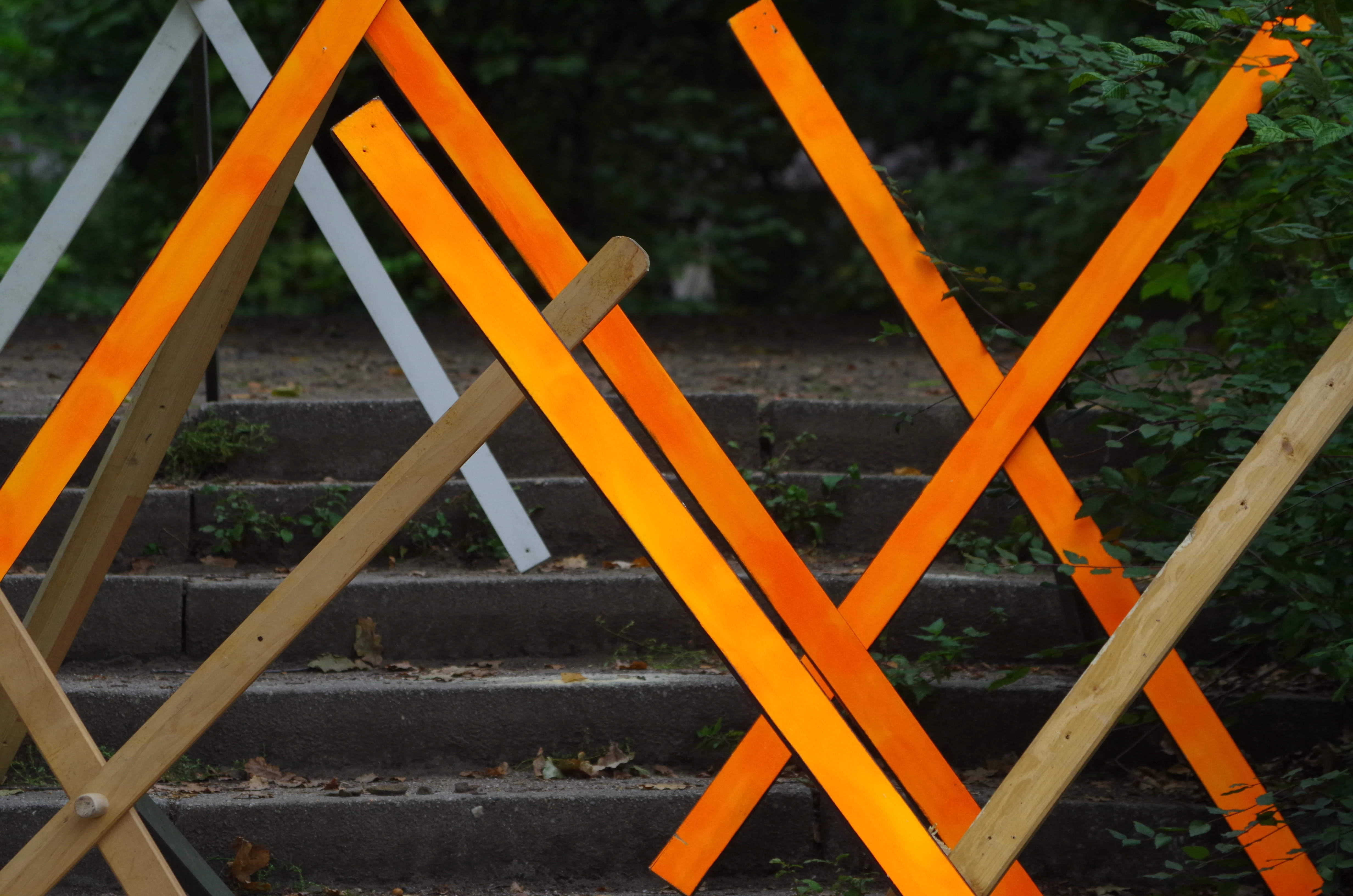 Barrieren, die für manche ein alltägliches Problem sind, bleiben für viele Menschen unsichtbar. Für „Doppelte Barriere“ konstruierten Markus Born und Markus Zimmermann mit ihren Unterstützer:innen Kunstwerke als Hindernisse. An Aktionstagen in Berlin markierten sie so Stellen im öffentlichen Raum, die nicht barrierefrei sind. Die bewusst platzierten Störer verdoppeln und vergrößern die ursprüngliche Barriere und machen den erschwerten Zugang zu diesen Orten für jede:n erfahrbar. Dem Abbau des jeweiligen Kunstwerks als zweiter Barriere folgt im besten Fall der Abbau der ersten Barriere durch die Verantwortlichen.