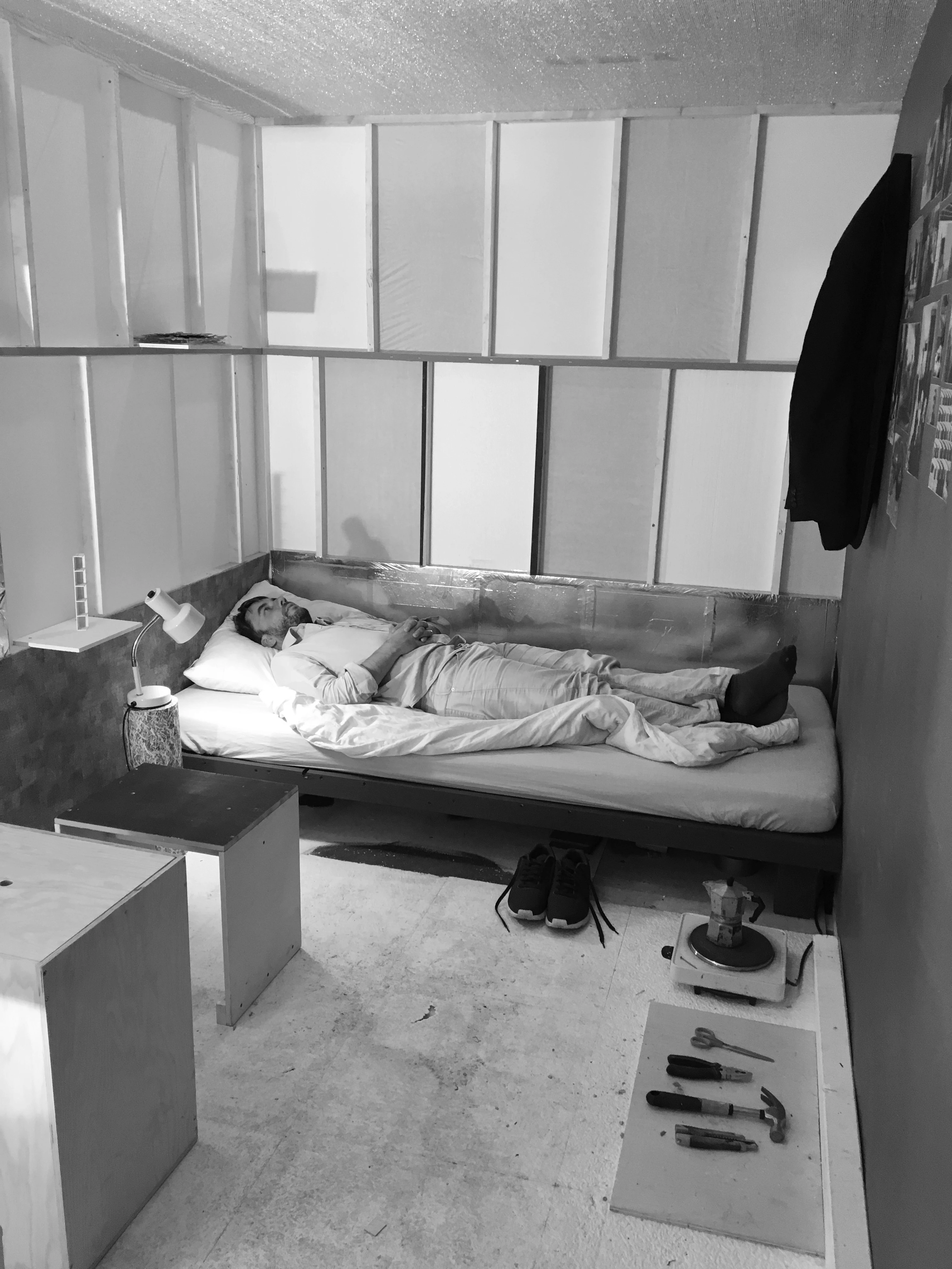 Ich nehme an der Ausstellung „Take me Tiger“ im Kunstraum D21 in Leipzig teil. Die Ausstellung beschäftigt sich mit dem Phänomen des Gebens und der Gabe. Hierfür baue ich in den Ausstellungsraum eine Hütte hinein und verwende dabei vorwiegend Restmaterial aus dem Lager der Institution. Während der Dauer der Ausstellung, kann jeder in dem selbstgebauten Raum kostenlos übernachten. Die Hütte wird auch auf Airbnb angeboten. Da es auf dieser Plattform keine Geschenke gibt und der Mindestbetrag bei 11 Euro liegt, erhalten die Gäste entweder einen Frühstücksgutschein über genau diesen Wert oder das Geld zurück.