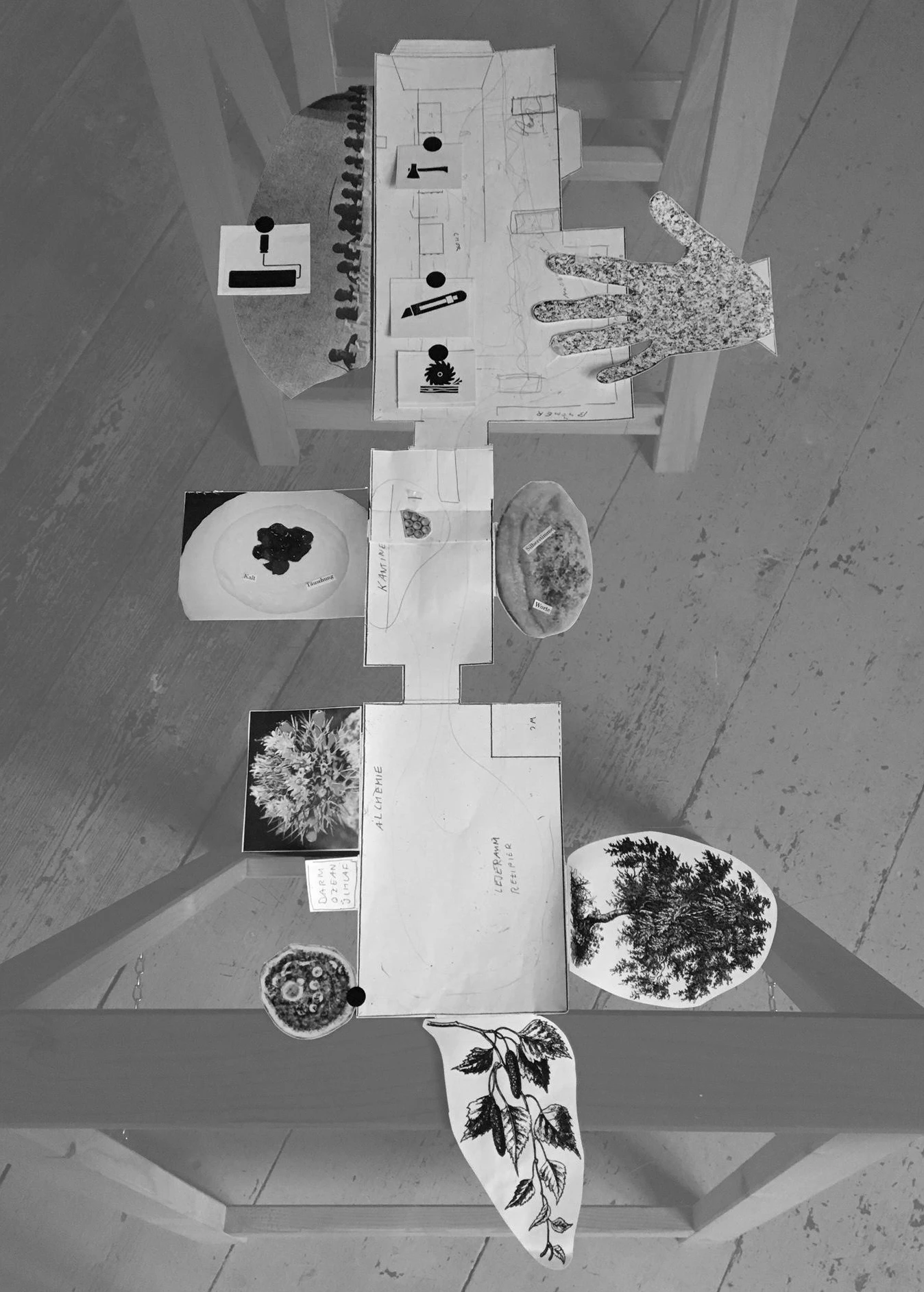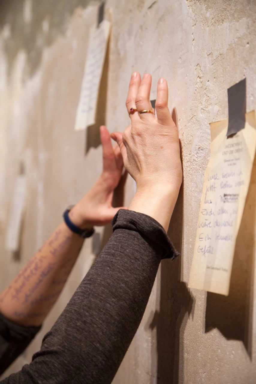 „Verhandlungen mit dem Tod“ rückte ritualisierte „Kommunikationsformen“ von der Lektüre bis zum Essen in den Fokus. Markus Born und Markus Zimmermann gestalteten hierfür die Galerie Goldstein zu einem lebendigen Organismus um. Dessen Körperteile bestanden aus acht Räumen, die von den Mitarbeiter:innen von SUPERFILIALE durch sich wiederholende Aktionen am Leben gehalten wurden. Die am Eingang in den Organismus eingespeisten Besucher:innen erhielten eine Süßigkeit mit einer Nummer, die sie an einer Klappe gegen ein gebrauchtes Buch eintauschten. Dieses durchlief eine mehrstufige Umwandlung: Es wurde teilweise zu einem essbaren Brei gerieben, am Fließband eingefärbt, als Material fürs Schreiben und als Papierflieger verwendet sowie mit Schrauben und Wachs versiegelt. Alle derart transformierten Bücher fanden zuletzt ihren Ort im Schaufenster der Galerie.