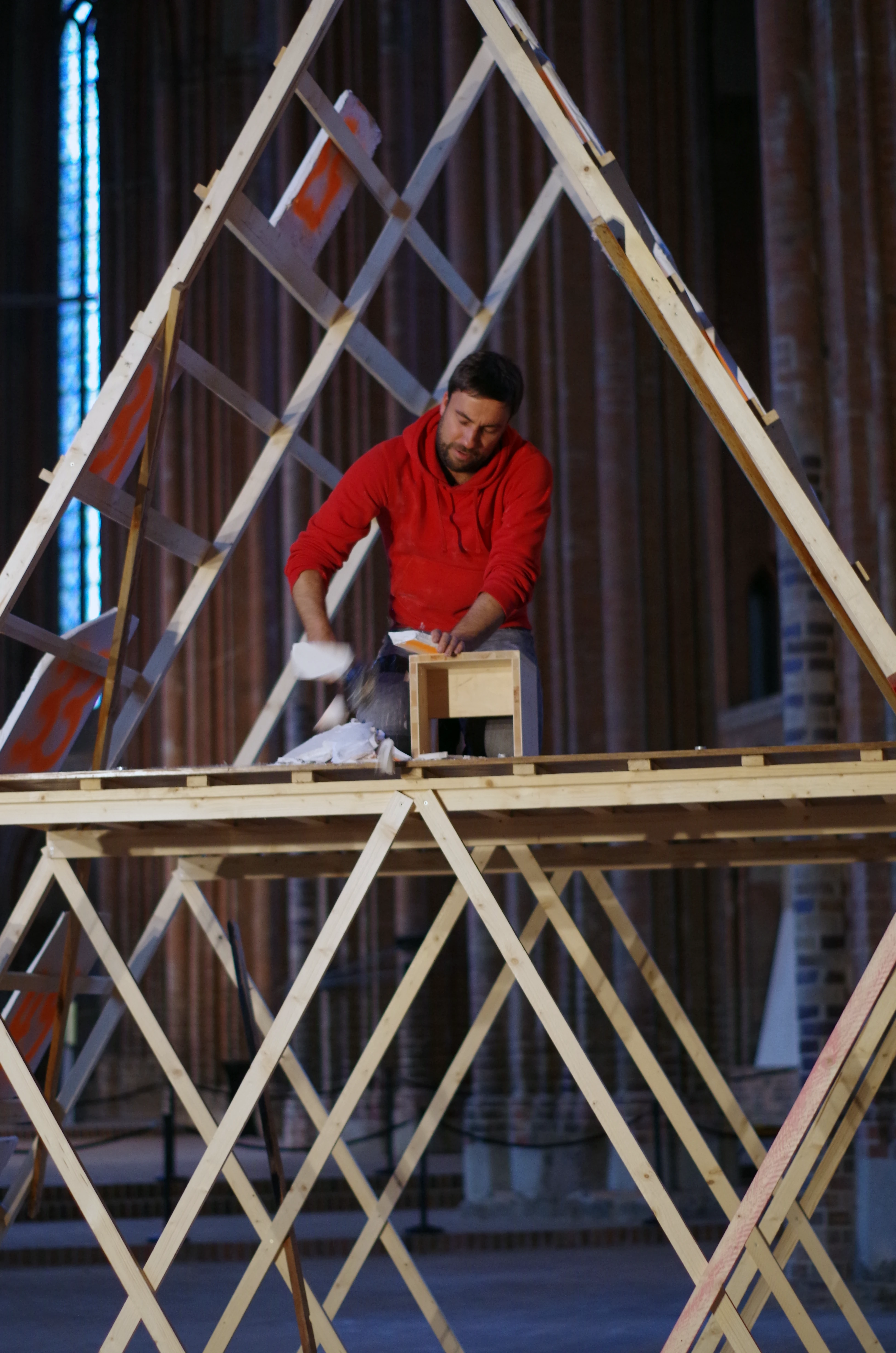Besucher:innen der Neueröffnung erhielten im Eingangsbereich der Filiale ein Stück Papier mit einer Zahl, die später aufgerufen wurde. Im Stuhlkreis hinter dem Altar fand daraufhin ein persönliches Gespräch mit Zimmermann über Wünsche und alltägliche Rituale der Besucher:innen statt. Born archivierte das hierbei angefertigte handschriftliche Protokoll in einem höher gelegenen Raum per Schreibmaschine und ließ es in den Kirchenraum fallen. Eine Filialmitarbeiterin sammelte es ein und brachte es in die Kapelle, die als Werkstatt diente. Dort gossen zwei Mitarbeiter:innen es in eine Gipsplatte und platzierten diese später auf einem von fünf Displays im Kirchenschiff. Für einen Monat lagen die so konservierten Wünsche dort aus.
